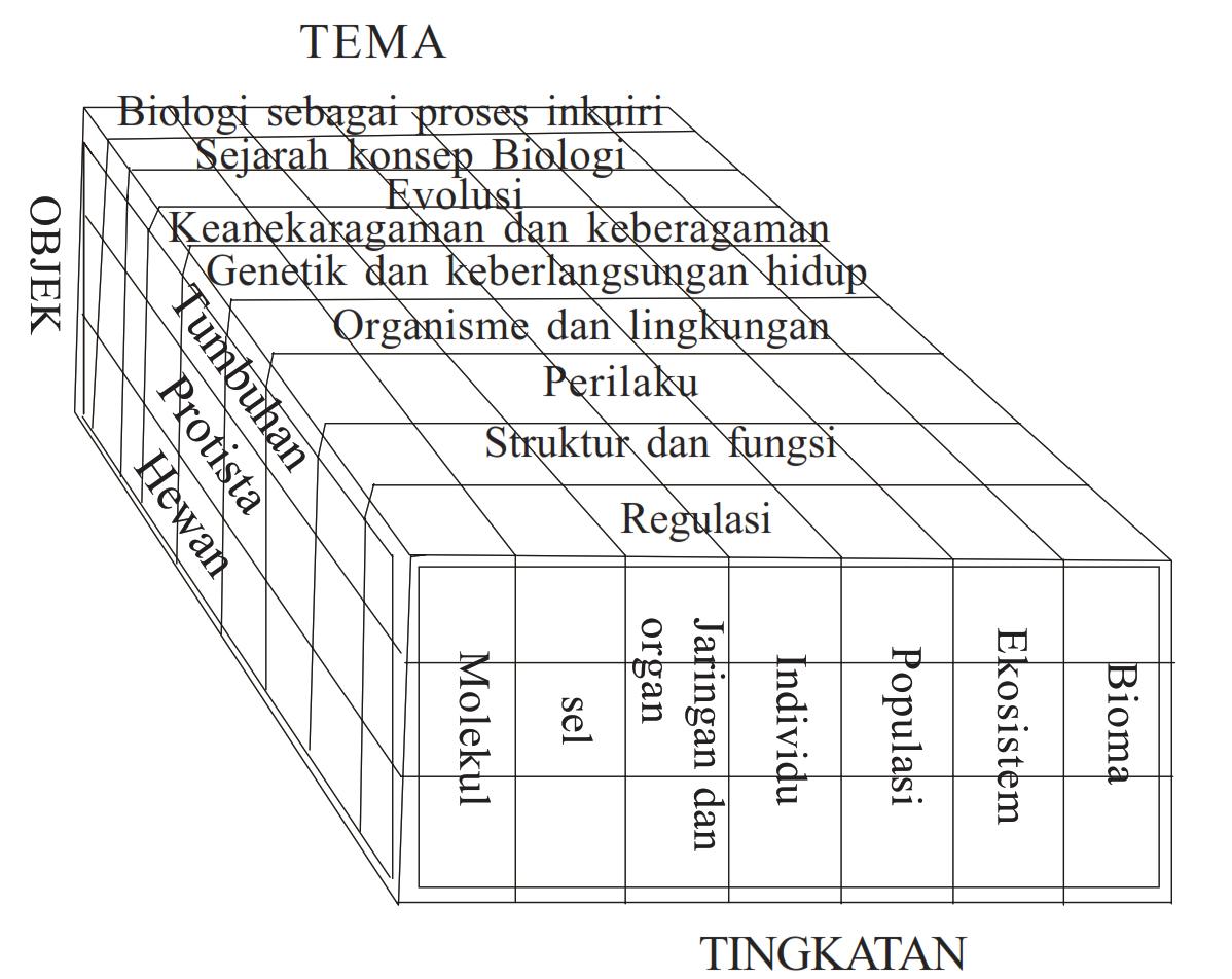 Struktur keilmuan biologi didasarkan pada hasil yang dirumuskan oleh tim BSCS (Biological Science Curiculum Study) sebagaimana dapat dibuat diagram seperti di bawah ini.